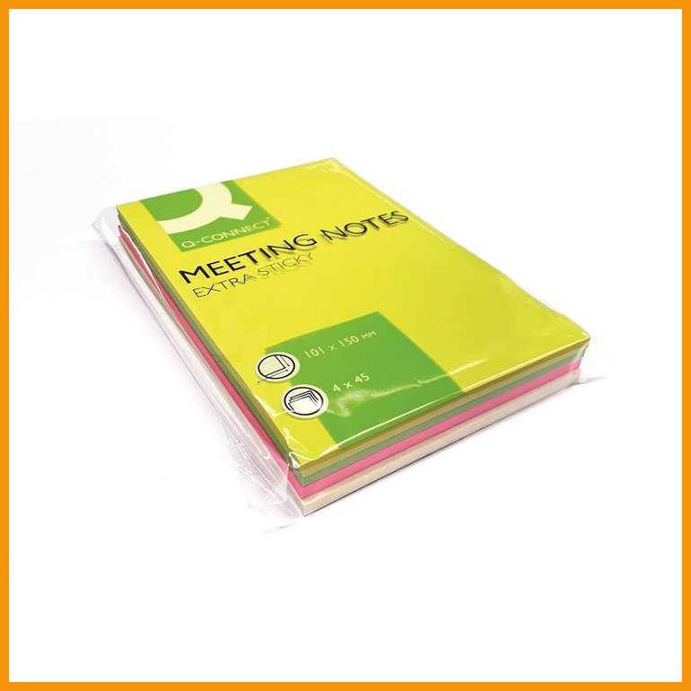 Q-Connectin Extra Sticky Meeting Notes -muistilapuissa on erittäin tarttuva ja tavallista pysyvämpi liimapinta. Isoissa muistilapuissa on tilaa pidemmällekin viestille.Mitat: 101 x 150 mm