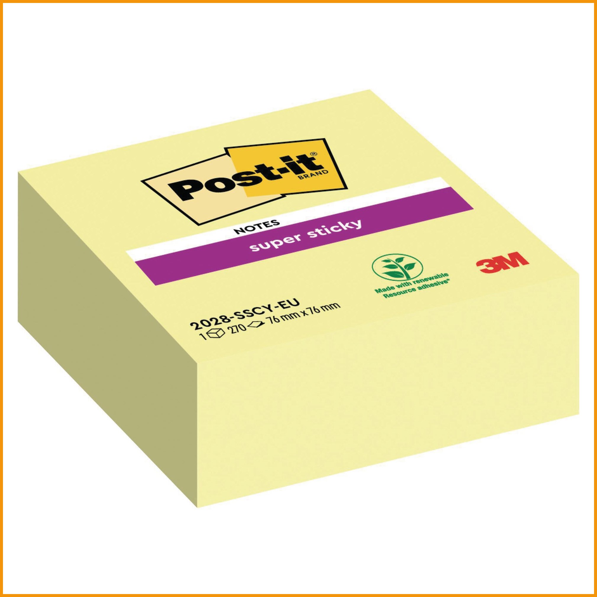 Muistilappukuutio Post-it super sticky 76 x 76mm, kanariankeltainen on loistava toimistotarvike, jonka verkkokaupan tilauksen toimitus kestää 1-2 päivää.Huomaa, että hinnaltaan yli 140 € verkkokauppatilaus toimitetaan aina ilmaiseksi! Meiltä voit tilata laskulla ja ilman rekisteröitymistä.