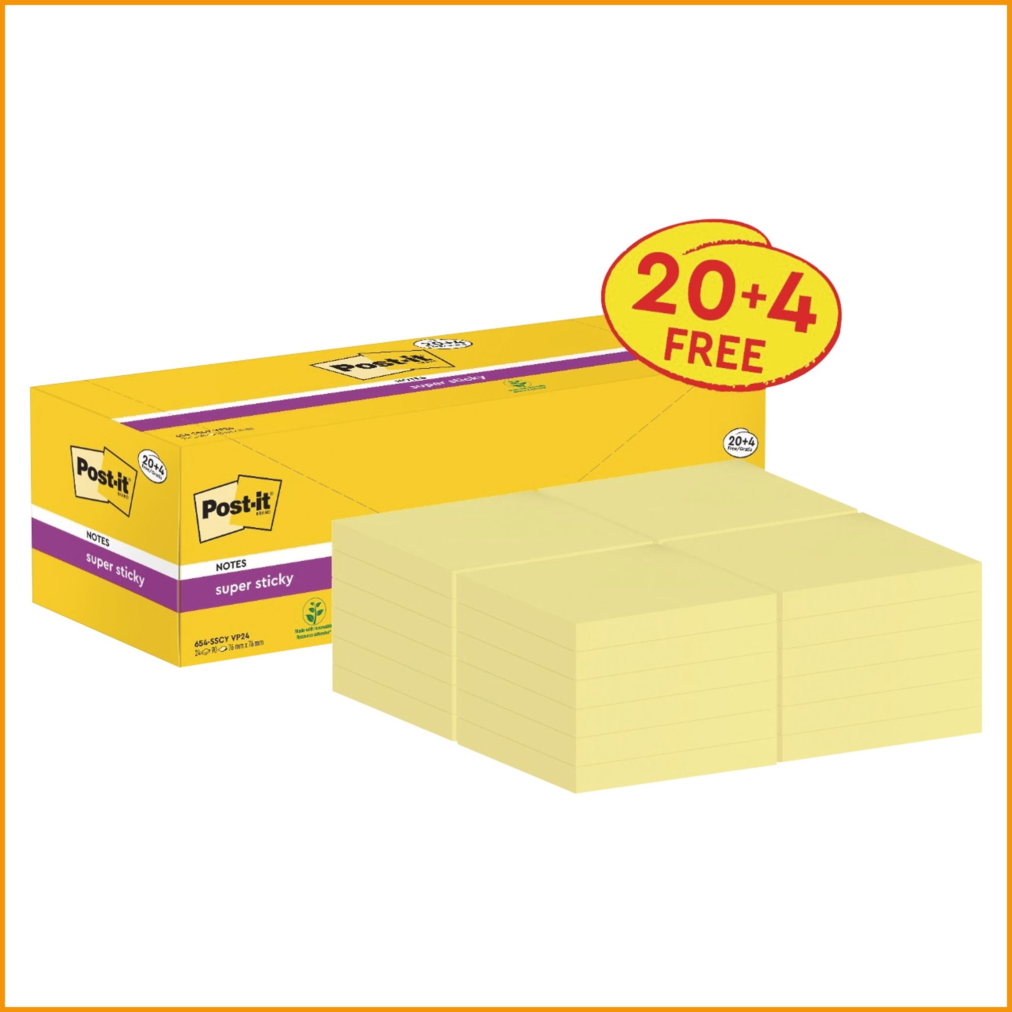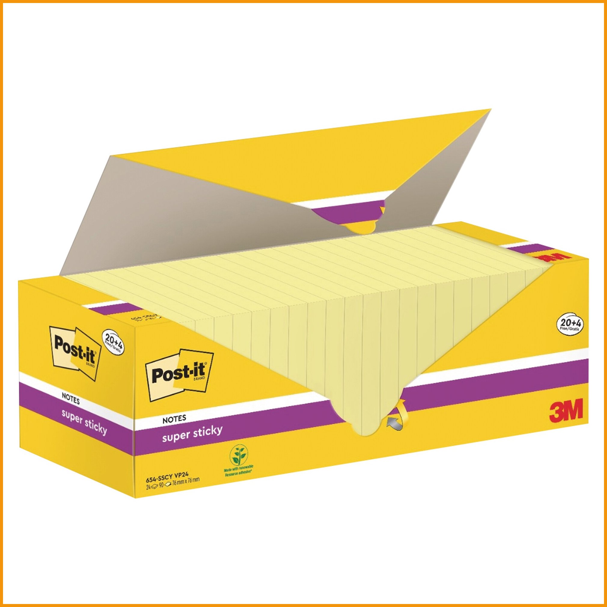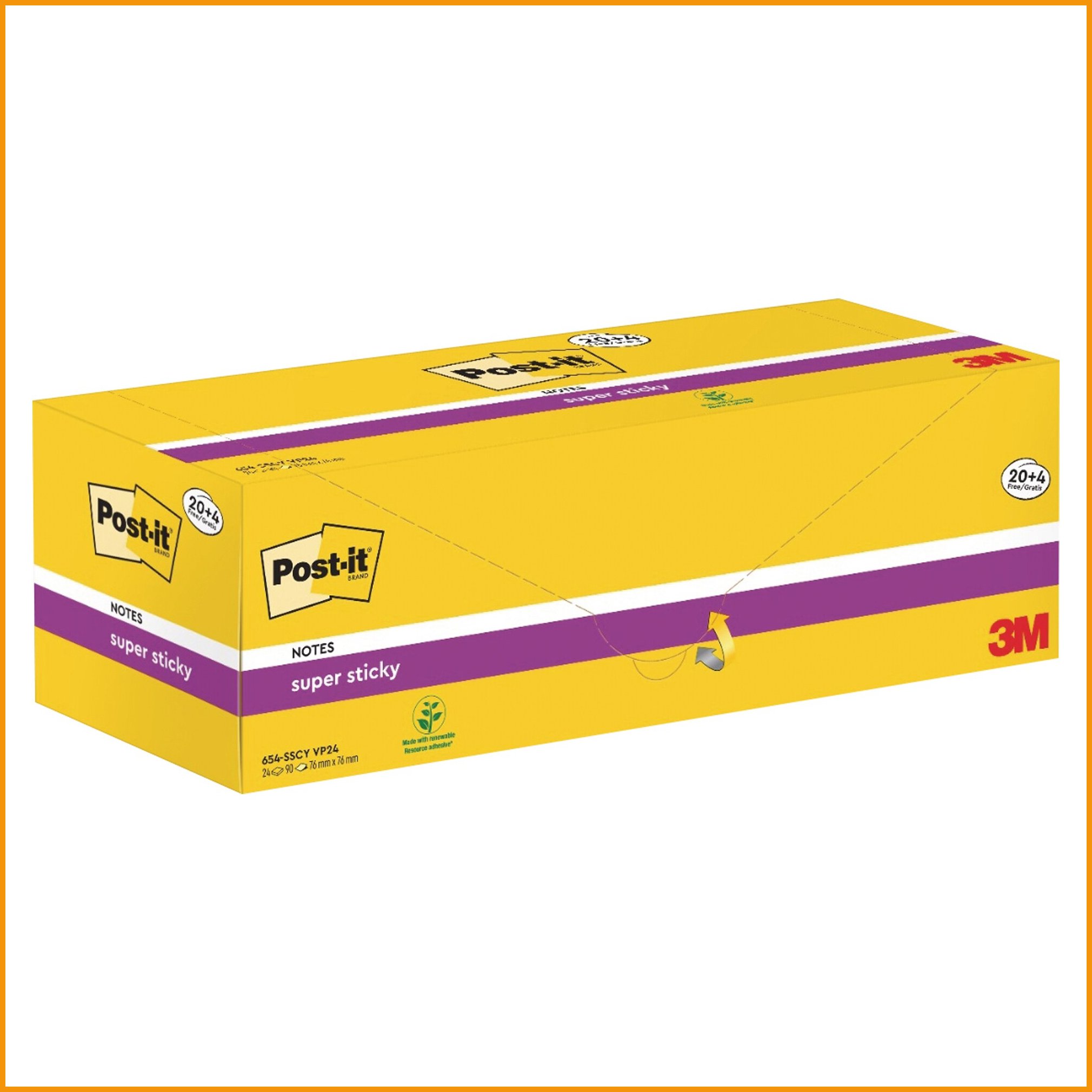Post-it super sticky -muistilaput ovat laadukkaita ja monikäyttöisiä. Supervahvan liiman ansiosta ne pysyvät kiinni entistäkin tiukemmin. Liima ei kuitenkaan tahraa pintoja irrottaessa. Ympäristöystävälliset muistilaput on valmistettu pefc-sertifioidusta puusta. Isossa säästöpakkauksessa on 24 nidettä ja jokaisessa niteessä 100 muistilappua. Myyntierä: 1 pkt.Muistilaput toimitetaan 24 kappaleen erissä.