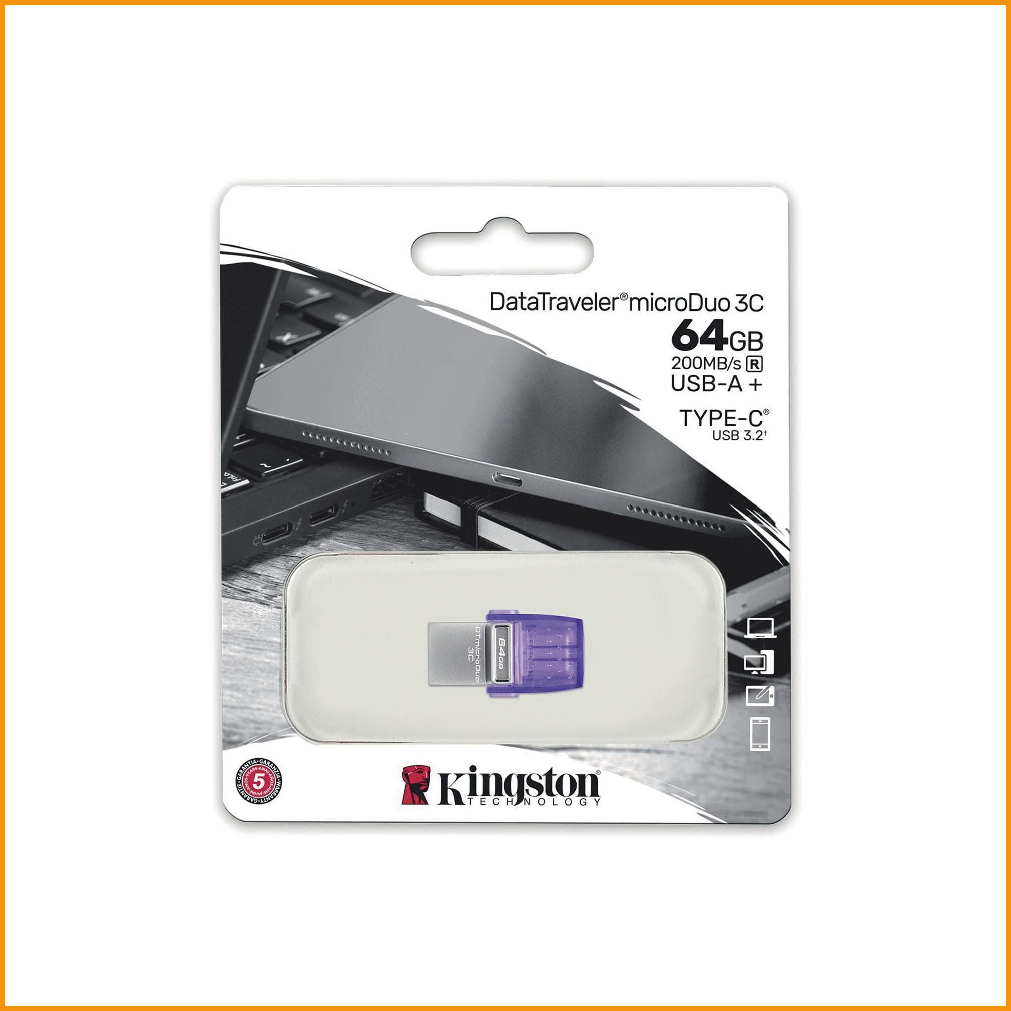 Kingstonin datatraveler microduo 3c:ssä on kätevä kaksoisliitäntä, joka toimii sekä perinteisen usb-a:n että uuden usb-c:n kanssa. tämän pienen usb-muistin avulla voit laajentaa vaikka tabletin ja älypuhelimen muistikapasiteettia sekä siirtää kuvia tai muita tiedostoja helposti tietokoneellesi. lukunopeus jopa 200 mt/s, kirjoitusnopeus jopa 15 mt/s. liitäntätyyppi: usb 3.2 / usb-c. tukee usb otg (on-the-go) -toiminallisuutta.Muistitikku Kingston® dt microduo 3c usb-c 64gb on hyvälaatuinen tallennusmedia, jonka toimituksen kesto on verkkokaupasta tilattuna 1-2 päivää. Huomaa, että toimitus on ilmainen yli 140 € hintaisille verkkokauppa ostoksille! Meiltä voit tilata laskulla ja ilman rekisteröitymistä.