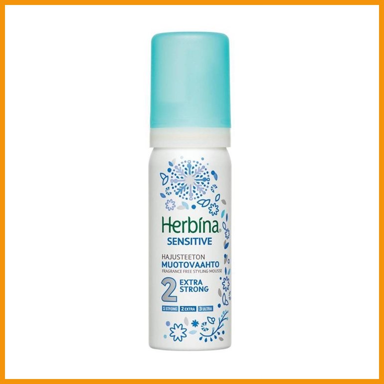 Hajusteeton Herbina Sensitive -muotovaahto antaa voimakkaan tuen kampaukselle. Vaahdon sisältämä lämpösuoja toimii hyvin esimerkiksi föönin tai kihartimen kanssa. Pieni pakkauskoko soveltuu näppärästi myös mukaan matkalle.Pakkauskoko: 50 ml
