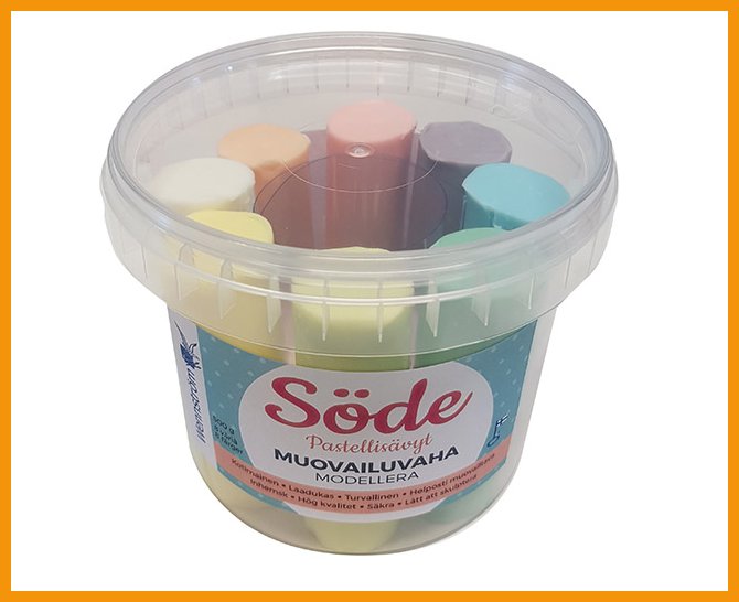 Wennströmin puhdistetusta mehiläisvahasta valmistettu Söde-muovailuvaha on elintarvikeväreillä värjättyä ja helposti muovailtavaa. Laadukas termoplastinen muovailuvaha pehmenee käsien lämmöstä, ei tartu sormiin, sotke tai murene eikä kuivu vanhetessaan. Gluteeniton muovailuvaha on vehnätöntä, soijatonta ja lapsiturvallista.Kotimaisella tuotteella on Avainlippu-tunnus.