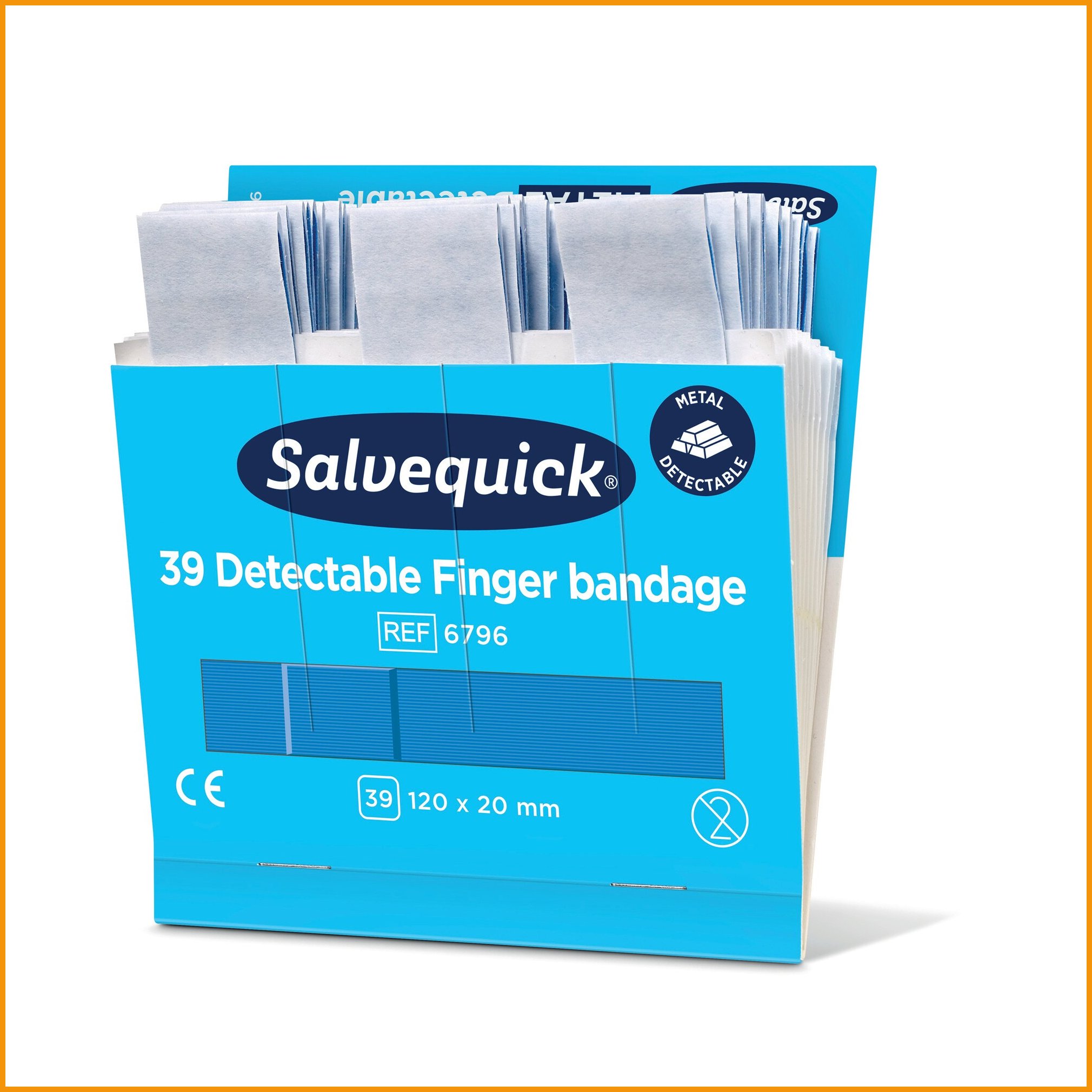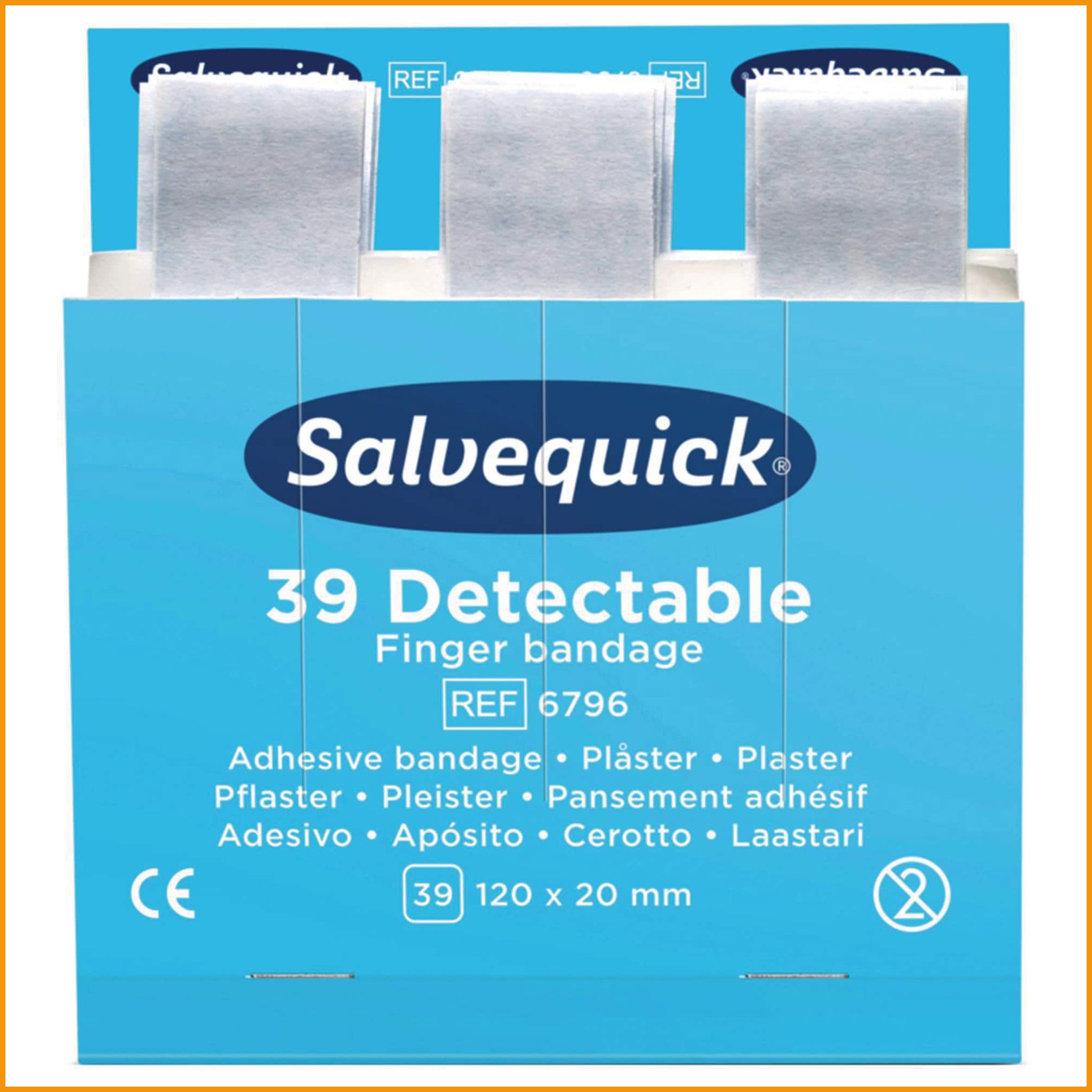 Salvequick erikoispitkä sininen muovilastari on tarkoitettu erityisesti elintarvikkeiden käsittelyyn. laastarit on helppo havaita ja jäljittää useimmilla elintarviketeollisuudessa käytettävillä metallinpaljastimilla, ja sininen väri erottuu helposti. allergiatestattu. laastarointi onnistuu entistä paremmin hankaliin paikkoihin, kuten esim. peukalontyveen. täydennyspakkaus sisältää 39 steriiliä laastaria (120 x 20 mm). myyntierä: 1 kpl = 6 täydennyspakkausta.Muovilaastari Salvequick 6796 pitkä sininen on korkeatasoinen hoitotarvike, jonka verkkokaupan tilauksen toimitus kestää 1-2 päivää. Muistathan, että hinnaltaan yli 140 € verkkokauppatilaus toimitetaan aina ilmaiseksi! Meiltä voit tilata laskulla ja ilman rekisteröitymistä.