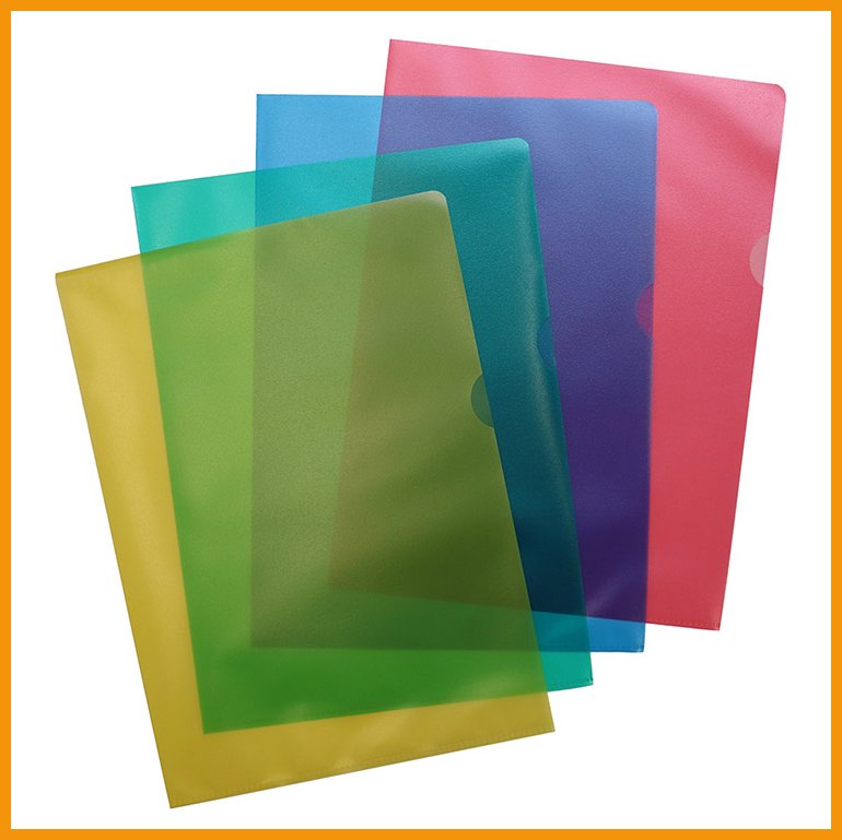 Esselten ylhäältä ja oikealta sivulta auki oleva muovitasku on appelsiinipintainen ja arkistointikelpoinen.Koko: A4