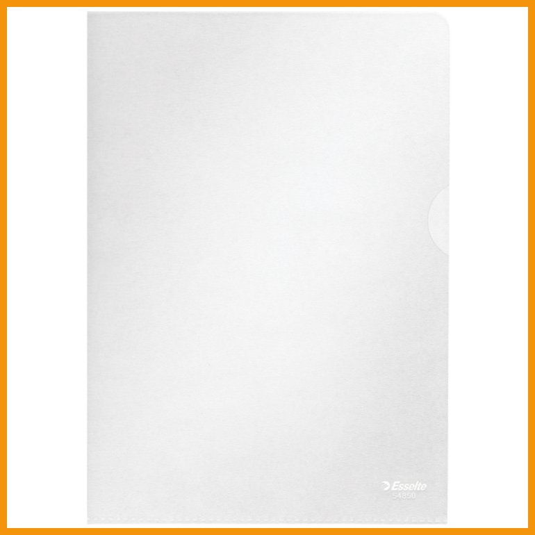 Ylhäältä ja oikealta sivulta auki oleva Esselte Quality -muovitasku on läpinäkyvä, heijastamaton ja appelsiinipintainen. Arkistointikelpoinen tasku on valmistettu 30-prosenttisesti kierrätetystä muovista.Koko: A5