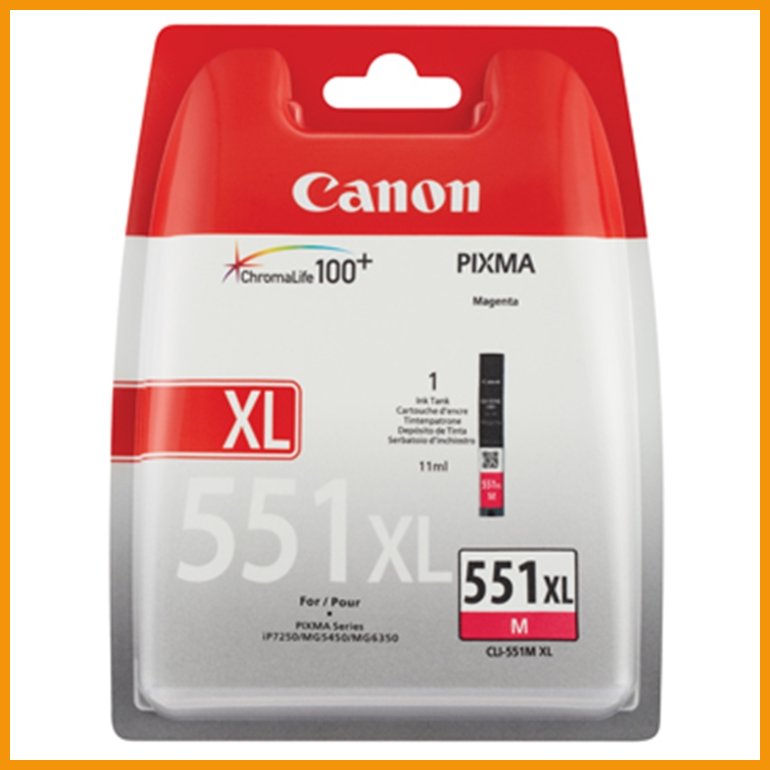 Aito Canon CLI-551M XL -mustekasetti viimeistelee Canon-tulostimesi ylivertaisen suorituskyvyn. Canonin alkuperäisosia käyttämällä varmistat laadukkaan ja yhdenmukaisen tulostusjäljen, jolloin asiakirjojesi laatu nousee uusiin korkeuksiin. Canon - nopeutta ja suorituskykyä.Tuotenimi: Canon CLI-551M XL