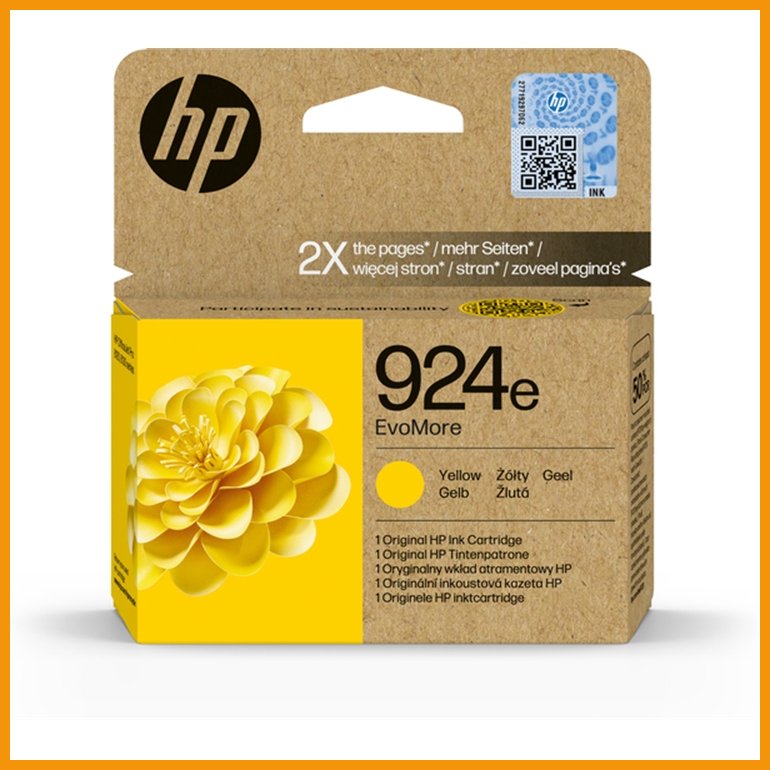 Käyttämällä HP:n alkuperäistä HP 924e -mustekasettia varmistat laadukkaan ja yhdenmukaisen tulostusjäljen.HP EvoMore -mustekaseteilla tulostat kaksinkertaisen määrän sivuja verrattuna vakiokoon HP-mustekasetteihin. Pakkaus on valmistettu vähintään 90-prosenttisesti kierrätyskuiduista ja on 100-prosenttisesti kierrätettävä.