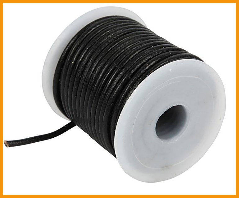 Pyöreää ja vahvaa nahkanauhaa. Paksuus 2mm. Pituus 10 metriä. Väri musta. 10 kpl.
