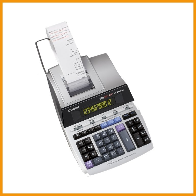 Canon MP1211-LTSC -nauhalaskimessa on monipuoliset vero- ja yrityslaskutoiminnot, kuten kustannus-, myynti- ja katelaskelmat, vaihtotoiminto sekä valuuttatoiminto. 12 numeron kaksivärinen näyttö on iso ja selkeä, laite on vakaa ja tukeva pöydällä, ja myös tulostus onnistuu kaksivärisenä. Laite toimii verkkovirralla.Mitat: 325 x 219 x 74,5 mm, paino 1550 g