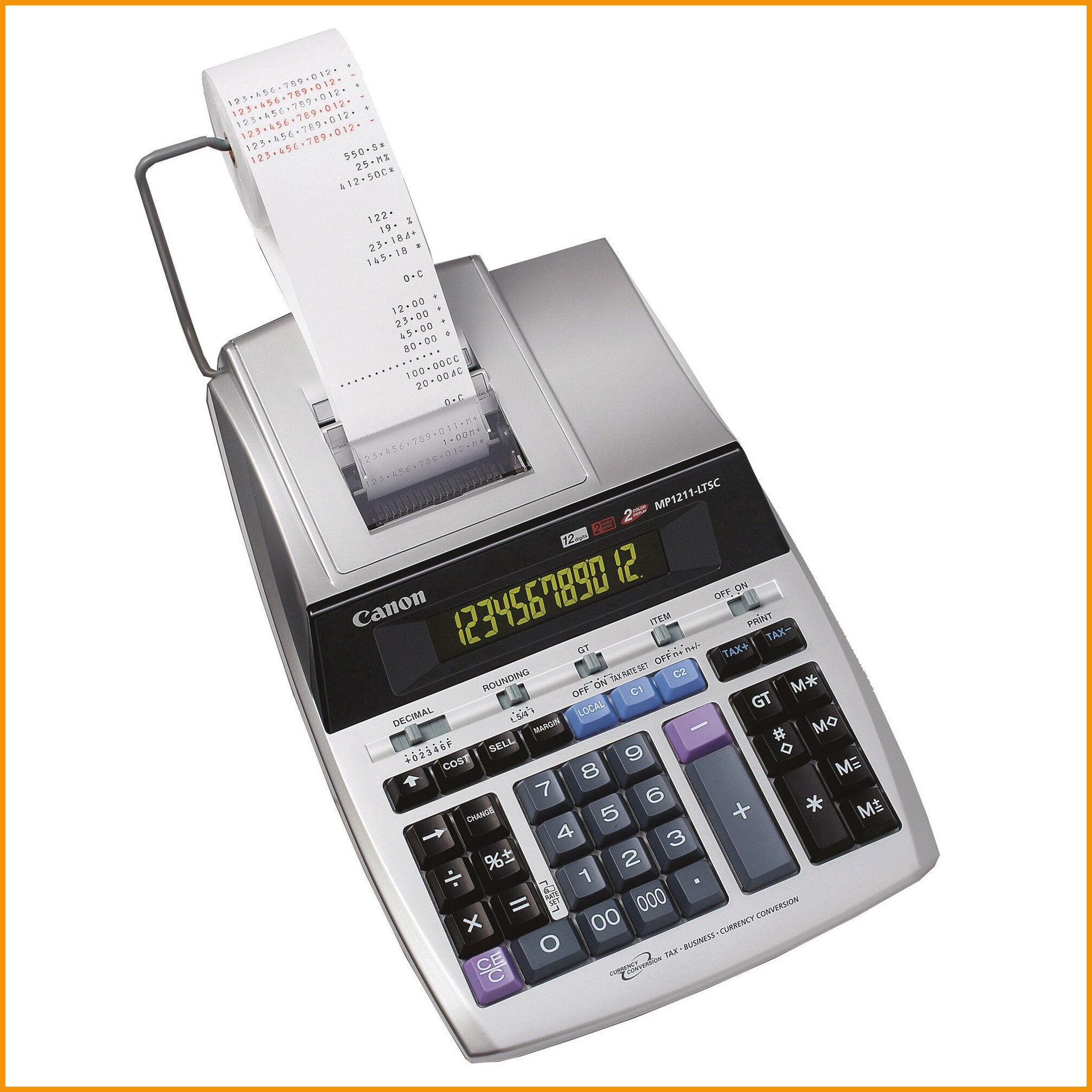 Nauhalaskin Canon MP1211-LTSC on laadukas ja monipuolinen laskukone ammattilaiskäyttöön toimistoihin ja kauppoihin. Nauhalaskimen suuri tulostusnopeus on 4 riviä sekunnissa. Nauhalaskimessa on 12-numeron fluorisoiva näyttö.