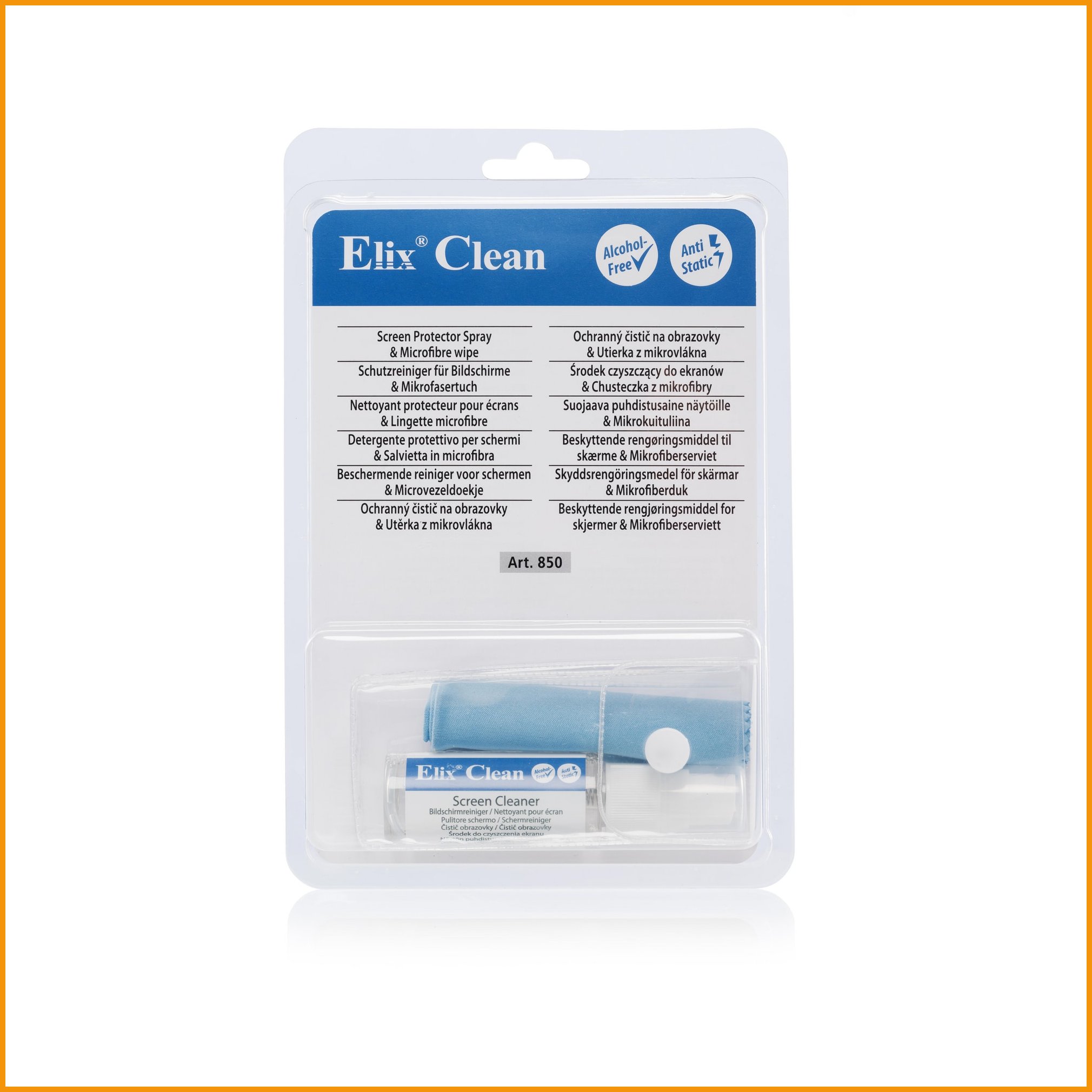 Näytönpuhdistusaine Elix ja mikrokuituliina tuotetiedot