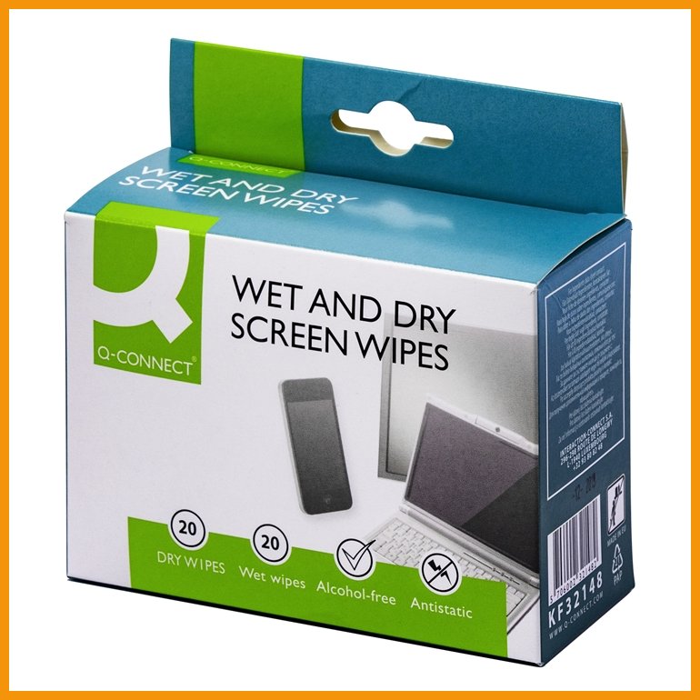 Näytönpuhdistusliina Q-CONNECT märkä+kuiva /20+20 hinta 3,25€
