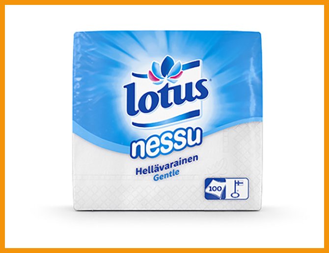 Lotus Nessu on pehmeä ja hygieeninen, kolmikerroksinen nenäliina.Suomessa FSC-sertifioidusta kuidusta valmistetulla ja hellävaraisella tuotteella on sekä kotimainen Avainlippu-tunnus, EU Ecolabel -ympäristösertifikaatti että Allergia-, Iho- ja Astmaliiton tunnus.