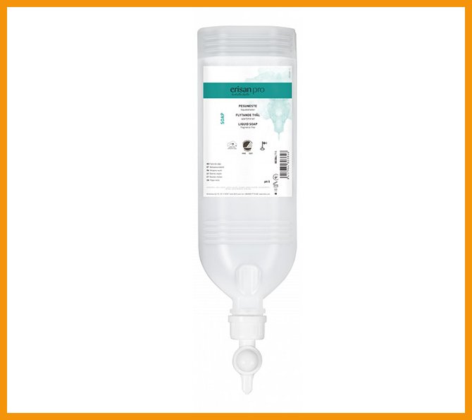 Erisan Pro Soap on tehokas ja hellävarainen nestesaippua ammattikäyttöön. Hajustamaton ja hoitava tuote on tehokas, mutta samalla hellävarainen. Riittoisa ja taloudellinen tuote vaahtoaa miellyttävästi ja huuhtoutuu helposti. Myös usein toistuvaan käsien pesuun soveltuva saippua sisältää ihoa kosteuttavaa glyserolia.Kotimaisella ja hellävaraisella tuotteella on sekä kotimainen Avainlippu, pohjoismainen Joutsenmerkki että Allergia-, Iho- ja Astmaliiton tunnus.