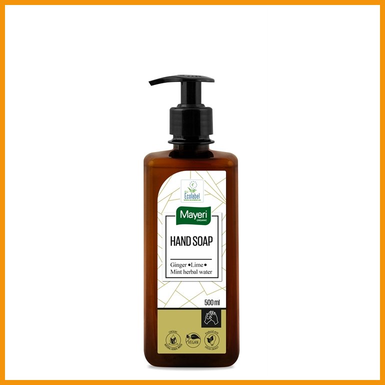 Mayeri Ginger & Lime-Mint on hellävarainen nestesaippua päivittäiseen käsipesuun. Ihoa pehmentäviä ainesosia sisältävä tuote jättää käsiin miellyttävän tuoksun.Tuote on valmistettu uusiutuvan energian avulla minttu-yrittiveteen 95-prosenttisesti luonnon omista ainesosista. Vegaanisella tuotteella on EU Ecolabel -ympäristösertifikaatti.