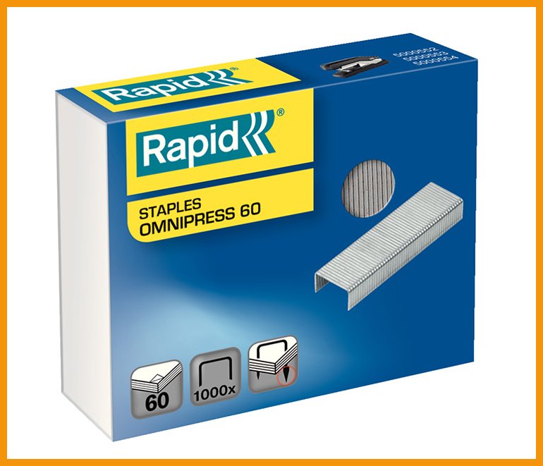 Erikoisniitit Rapid Omnipress SO60- ja SO60C -nitojiin.Nidontakapasiteetti: 60 arkkia (80 gsm)