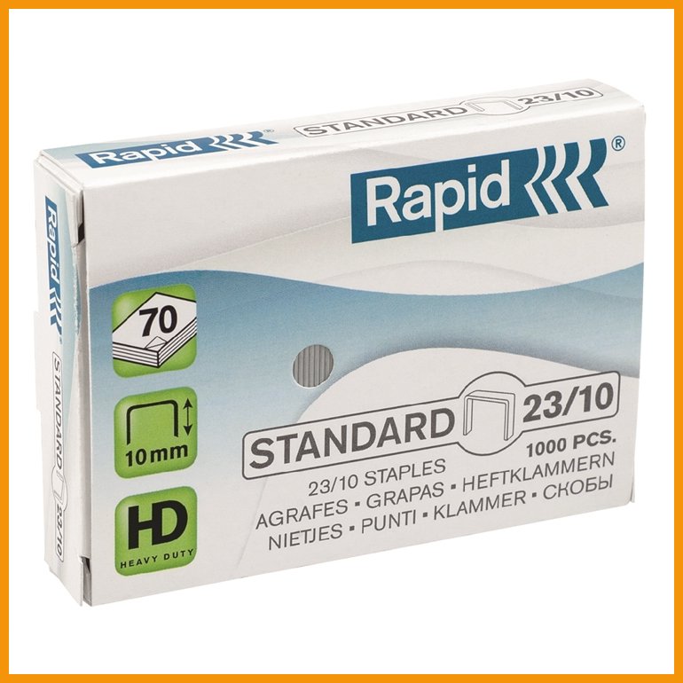 Rapid Standard 23/10 on galvanoidusta teräslangasta valmistettu niitti Rapid Heavy Duty -nitojiin HD70, HD110 ja HD210.Koko: 23/10