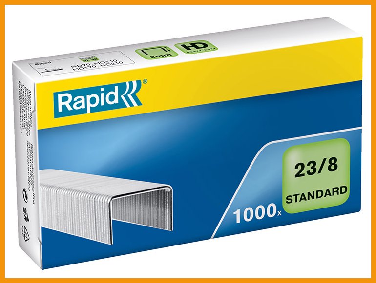 Rapid Standard 23/8 on pehmeästä, galvanoidusta teräslangasta valmistettu niitti Rapid-nitojiin HD70, HD110 ja HD210.Koko: 23/8