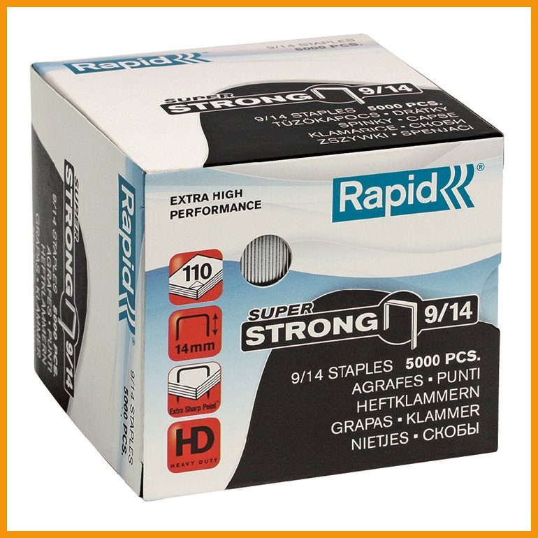Rapid SuperStrong 9/14 on galvanoidusta teräslangasta valmistettu erittäin vahva niitti, joka on suunniteltu erityisesti nitojalle Rapid HD9. Niitit sopivat myös muihin malleihin, kuten Rapid HD49, HD170, R110E, Rexel Giant ja Novus 23.Koko: 9/14