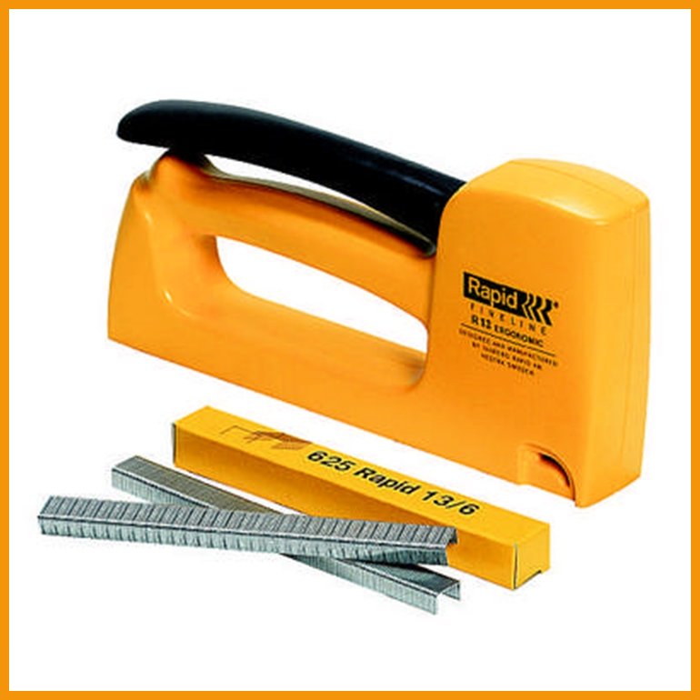 Rapid R13 -niittipistooli on todellinen klassikko. R13 on ergonominen ja kevyt työkalu kevyempiin töihin, kuten huonekalujen verhoiluun ja somistustöihin. Pistooli soveltuu tekstiilien, säkkikankaan, nahan, verkon, julisteiden, etikettien, listojen, kehysten jne. Kiinnittämiseen. Nitojassa käytetään 13/4-10 -kokoisia niittejä, joita löydät verkkokaupastamme koodeilla 251509, 251510 ja 251511.Väri: oranssi/musta
