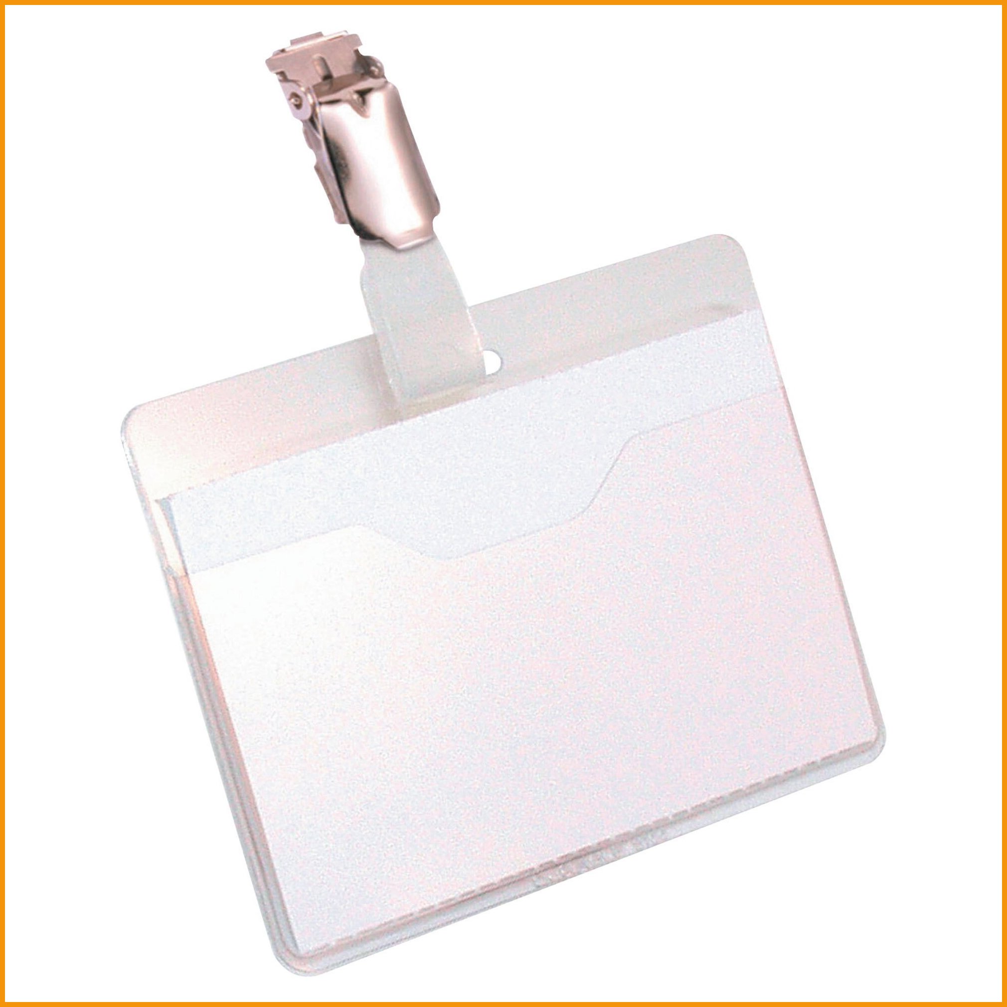 Nimilappukotelo Durable Vaaka Metalli Klipsillä 60mm x 90mm 25kpl. Nimikorttikotelo on läpinäkyvää muovia, johon voi helposti vaihtaa kortin.