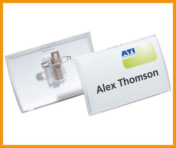 Durable 821119 on kaarevaksi muotoiltu nimikorttikotelo, jossa on sekä hakaneula- että hauenleukakiinnitys. Nimikortti on helppo lisätä ja poistaa. Kotelo on valmistettu läpinäkyvästä, 70-prosenttisesti kierrätetystä PP-muovista.Mitat: 40 x 75 mm
