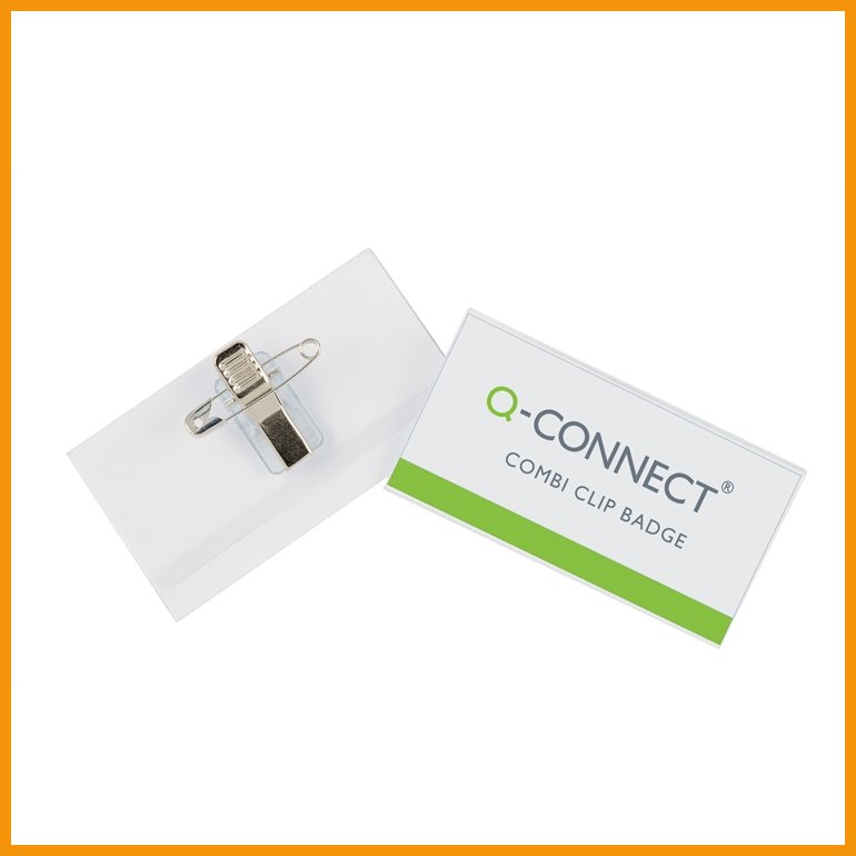 Q-CONNECTin osittain avoimessa, läpinäkyvästä PVC-muovista valmistetussa nimikorttikotelossa on sekä hakaneula- että hauenleukakiinnitys ja kortin asettamista helpottava sormilovi.Voit luoda ja tulostaa nimikortit Q-CONNECTin ilmaisessa palvelussa osoitteessa https://print.q-connect.com/. Tämän tuotteen koodi sivustolla on KF01567. Voit valita oikean nimikorttipohjan myös mittojen mukaan ilman tuotekoodia. Kaikki pohjat löytyvät kohdasta Go to product codes oveview.