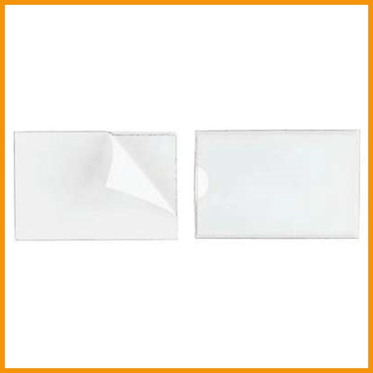 Itseliimautuva Durable Pocketfix -nimilappukotelo tarttuu useimmille sileille ja tasaisille pinnoille. Kotelo avautuu lyhyeltä sivulta.Mitat: 57 x 90 mm