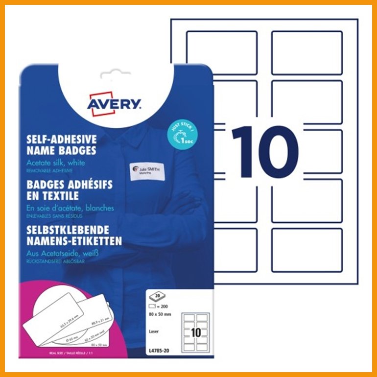 Averyn nimilapputarra-arkeilla luot ammattimaiset ja nimilaput itse. Joustavasta asetaattisilkistä valmistetut tarrat soveltuvat useimmille kankaille (ei kuitenkaan nahka, mokka, sametti tai silkki) ja ne on helppo poistaa jälkiä jättämättä. PVC.vapaat arkit soveltuvat sekä laser- että mustesuihkutulostukseen.Säästä aikaa käyttämällä ilmaista avery-tarrapohjaa ja -ohjelmaa osoitteessa www.avery.eu.