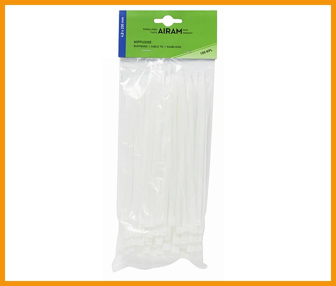 Nippuside Airam 4,8 x 200 mm valkoinen /100 on tasokas pakkaustarvike, jonka verkkokaupan tilauksen toimitus kestää 1-2 päivää. Tiedäthän, että hinnaltaan yli 140 € verkkokauppatilaus toimitetaan aina ilmaiseksi! Meiltä voit tilata laskulla ja ilman rekisteröitymistä.