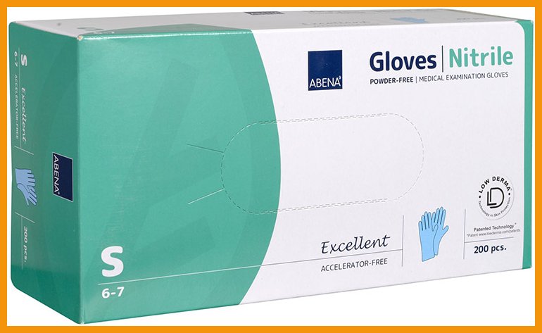Allergisille soveltuva Abena Excellent on puuteriton ja joustava nitriilikäsine, joka ei sisällä kiihdyttiminä toimivia kumikemikaaleja tai lateksia. Käsine soveltuu niin allergisten käyttäjien kuin myös allergisia potilaita käsittelevien henkilöiden jokapäiväiseen käyttöön esim. allergiaosastoilla. Hyvällä istuvuudella ja korkealla tuntoherkkyydellä varustetut käsineet soveltuvat mm. siivoukseen, hoitotehtäviin, ruoan käsittelyyn, laboratorioon sekä lääkkeiden, sytostaattien ja hormonivoiteiden käsittelyyn.Koko: S