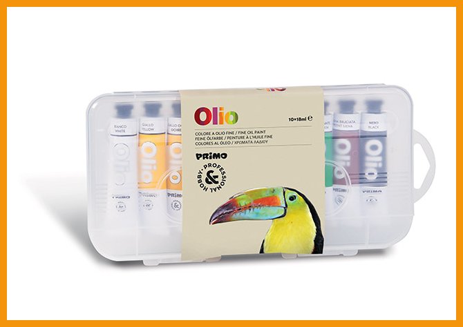 Primo Olio on pellavaöljypohjainen ja korkeapigmenttinen öljyväri, joka soveltuu sekä opetus- että ammattikäyttöön. Kirkkaat sävyt takaavat värit sekoittuvat hyvin keskenään ja sopivat monille pinnoille, kuten kangas, puu, pahvi, paperi.