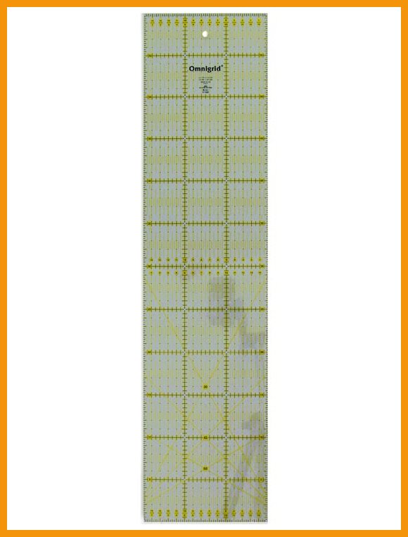 Tekstiiliviivain cm-jaotuksella, läpinäkyvää muovia. Painatus mustalla ja keltaisella. Soveltuu sekä vaaleiden että tummien kankaiden merkkaamiseen.