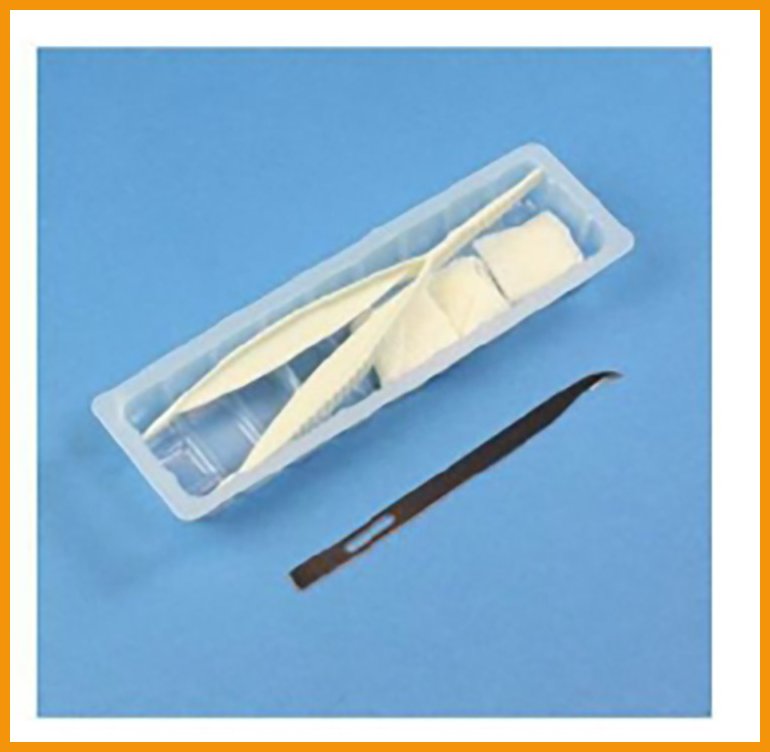 Steriilissä ompeleenpoistopakkauksessa on kaukalo, ompeleenpoistoterä, kolme harsoa (25 x 25 mm) ja pinsetit.Valmistaja: Mediplast AB