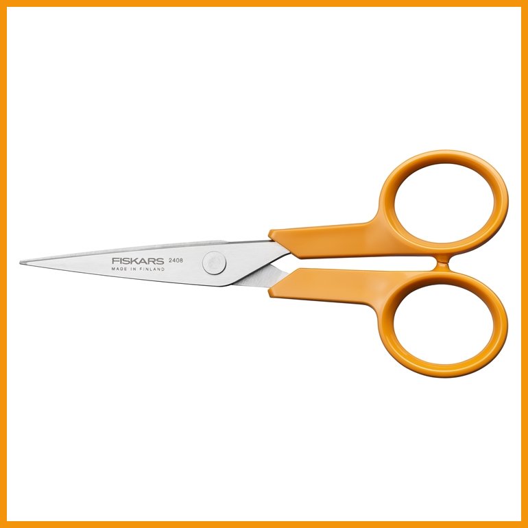 Oranssikahvaiset Fiskars Classic -sakset ovat ikoninen design-klassikko. Classic ompelusaksien kapeat ja terävät kärjet sopivat erityistä tarkkuutta vaativaan leikkaamiseen. Sakset soveltuvat kaikenlaisiin ompelutöihin, myös koruompeluun.Terät on valmistettu korkealaatuisesta nikkelittömästä ja ruostumattomasta karkaistusta teräksestä. Ne on tarkkuushiottu viiteen kertaan varmistamaan terävä leikkuutulos. Terän kovuus on HRC57.