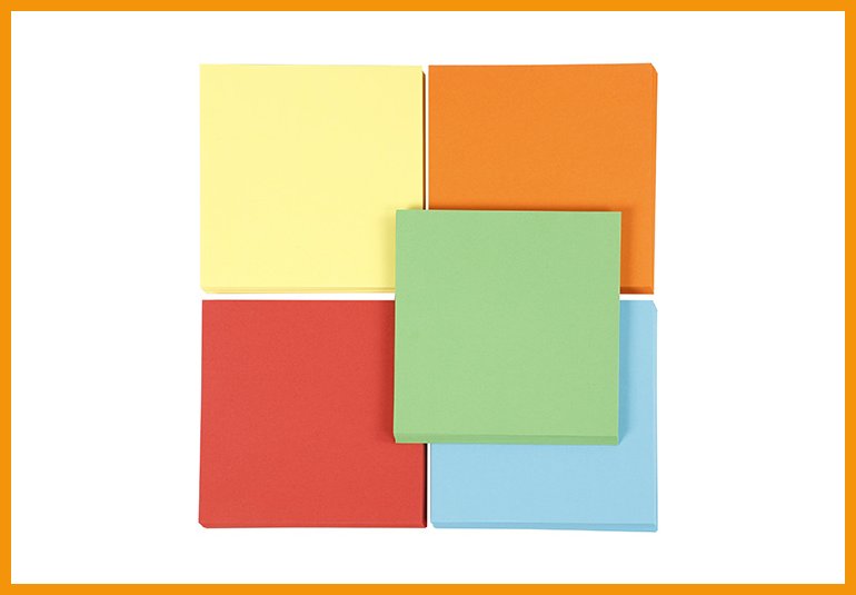 Pakkauksessa on 80 arkkia kutakin viittä väriä, yhteensä 400 kpl.