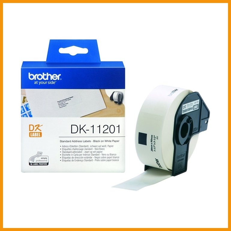 Brother DK-11201 on valmiiksi muotoiltu paperinen osoitetarra soveltuviin Brother-tarratulostimiin. Osoitetietojen lisäksi voit tulostaa tarroihin yrityksen logon, viivakoodin tai muuta lähetykseen liittyvää tietoa.Tarran mitat: 29 x 90 mm