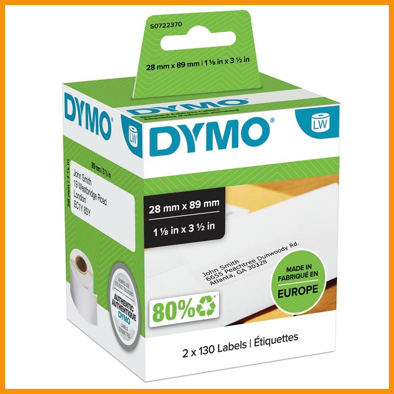 DYMO LabelWriter -osoitetarrat ovat nopea ja helppo tapa luoda osoitetarrat kirjeisiin ja muihin lähetyksiin. Lämpösiirtotekniikalla toimivat tarrarullat sopivat useimpiin DYMO LabelWriter -Tarratulostinmalleihin.Tuote on valmistettu kierrätetystä ja FSC-sertifioidusta materiaalista.