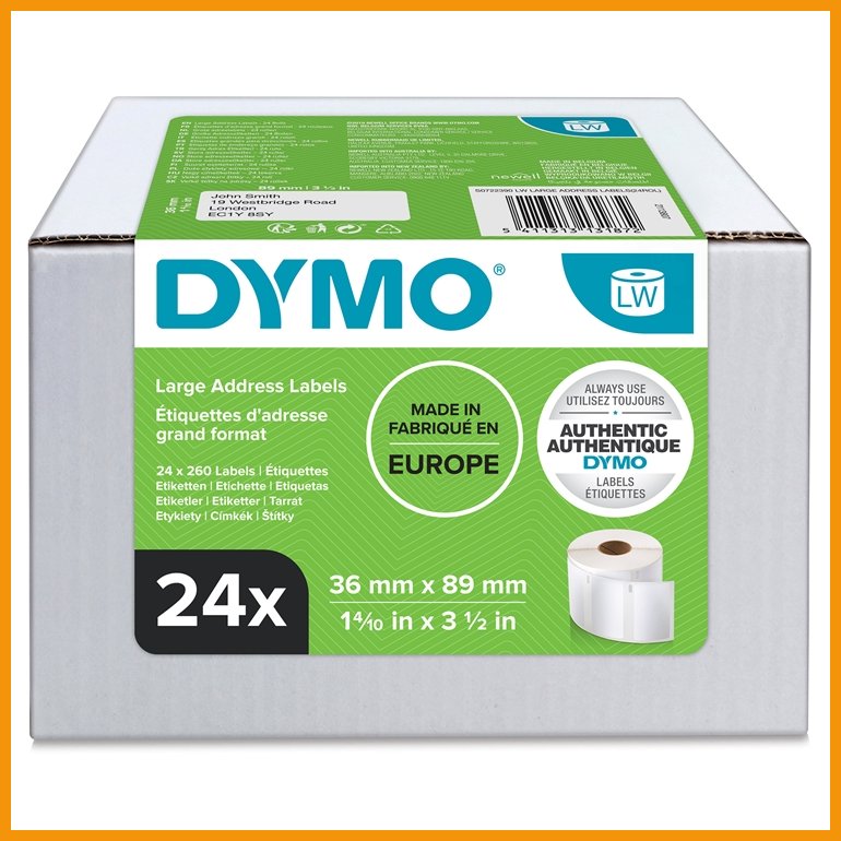DYMO LabelWriter -osoitetarrat ovat nopea ja helppo tapa luoda osoitetarrat kirjeisiin ja muihin lähetyksiin. Lämpösiirtotekniikalla toimivat tarrarullat sopivat useimpiin DYMO LabelWriter -Tarratulostinmalleihin.Tuote on valmistettu kierrätetystä ja FSC-sertifioidusta materiaalista.