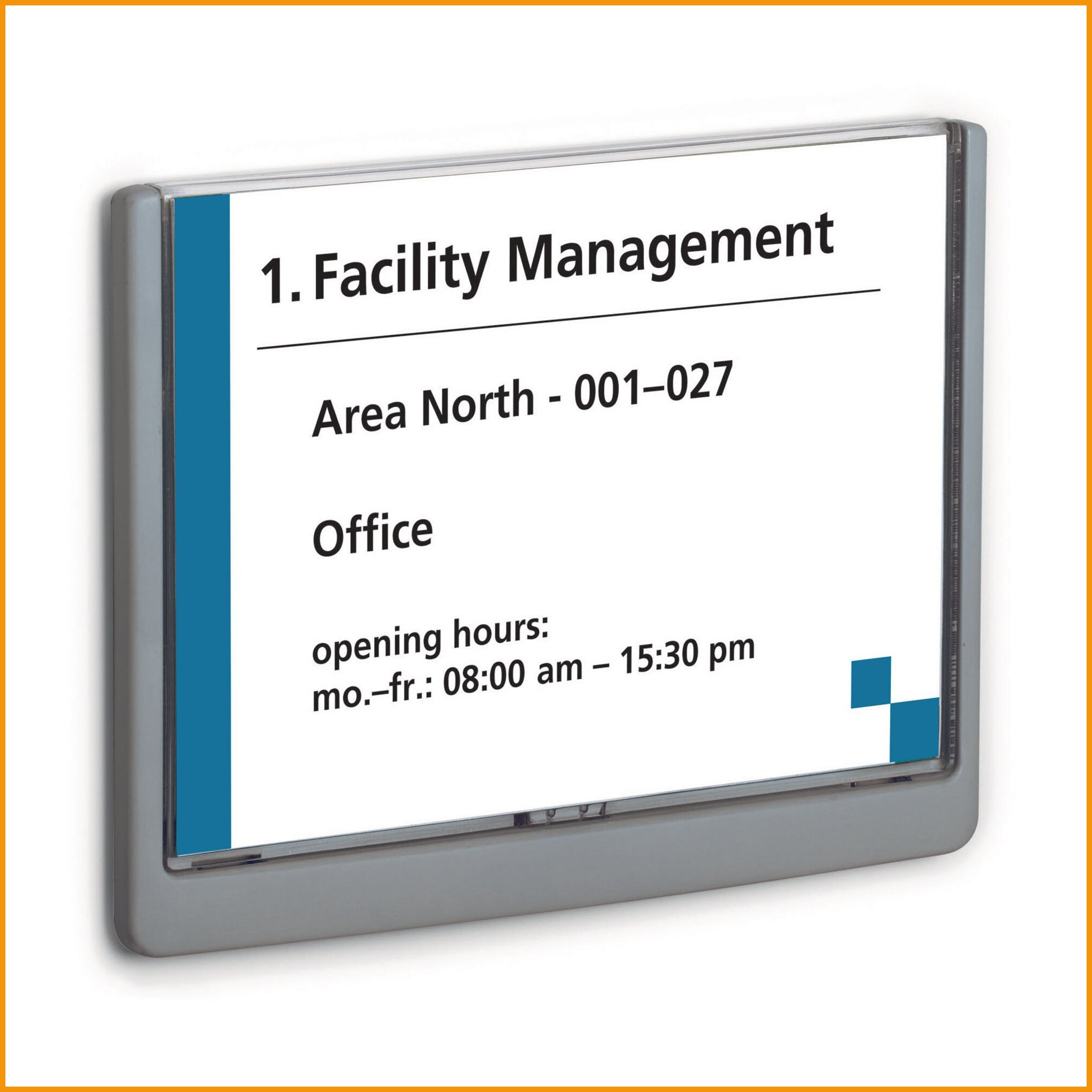 Hinta 28,91€ / kplDurable click sign -ovikyltit on valmistettu korkealaatuisesta abs-muovista ja akryylistä. kyltin insertit on helppo vaihtaa nostamalla ja painamalla alas läpinäkyvää etulevyä. kyltti soveltuu erinomaisesti kierrätykseen. pakkaukseen sisältyy yksi insertti sekä tarvittavat ruuvit ja tarrat.