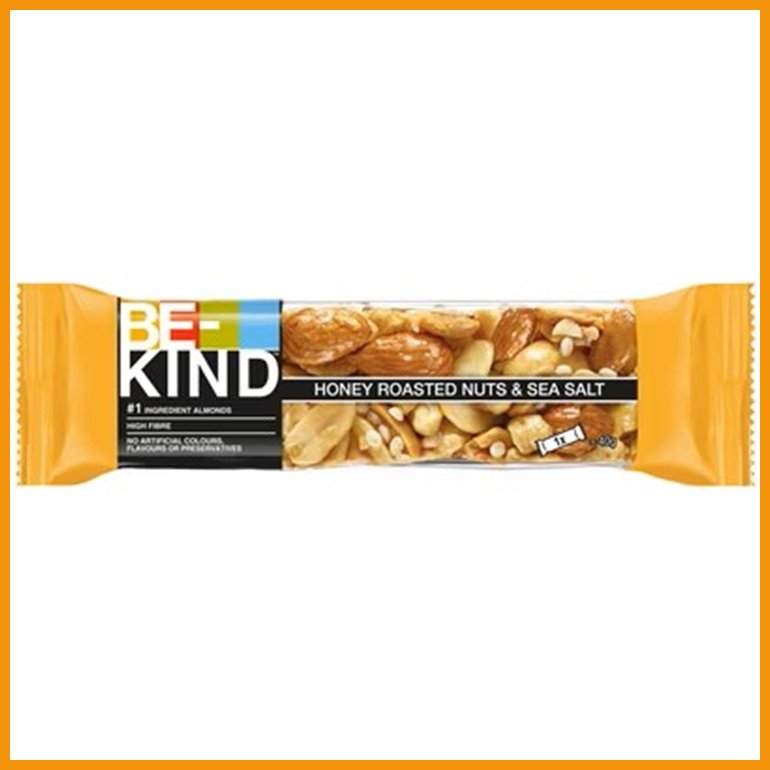 Be-Kind Honey Roasted Nuts & Sea Salt -välipalapatukka on herkullinen sekoitus pähkinöitä, mantelia ja hunajaa. Kokonaisuus on viimeistely merisuolalla. Proteiinirikkaissa Be-Kind -patukoissa ei ole lisäaineita, keinotekoisia aromeja tai makeutusaineita - niiden maku tulee aidoista asioista.Paino: 40 g