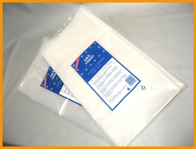 Vahva ja kestävä, kirkas LD-PE eräpakastesäkki isompaan pakastustarpeeseen. Mitat:500x1000 mm. 5 kpl pakkauksessa.