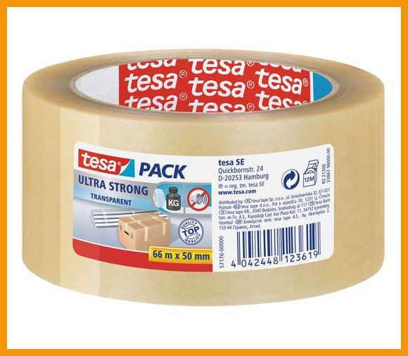 Tesapack ultra strong on hiljaisesti ja tasaisesti rullalta kelautuva PVC-muovinen pakkausteippi erittäin hyvin tarttuvalla luonnonkumiliimalla. Repeytymistä kestävä pakkausteippi soveltuu raskaan tavaran pakkaamiseen ja muuhun vaativaan käyttöön, jossa tarvitaan erittäin pitävää sulkemista.Rullan pakkausteipin mitat: 50 mm x 66 m