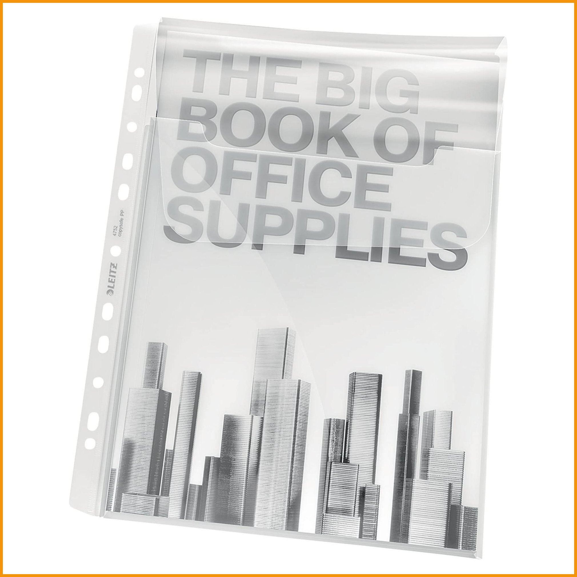 Leitz premium -paljetasku suojaa asiakirjoja lialta ja kulumiselta. ylhäältä avautuvaan taskuun sujautat nipun tärkeitä dokumentteja nopeasti ja vaivattomasti. läppä pitää asiakirjat paikoillaan ja estää niitä valumasta ulos. laadukas paljetasku on valmistettu 180 mikronin vahvuisesta polypropeenista. taskuun mahtuu jopa 200 arkkia ja sitä voi käyttää myös arkistointiin.Paljetaskut toimitetaan 5 kappaleen erissä.