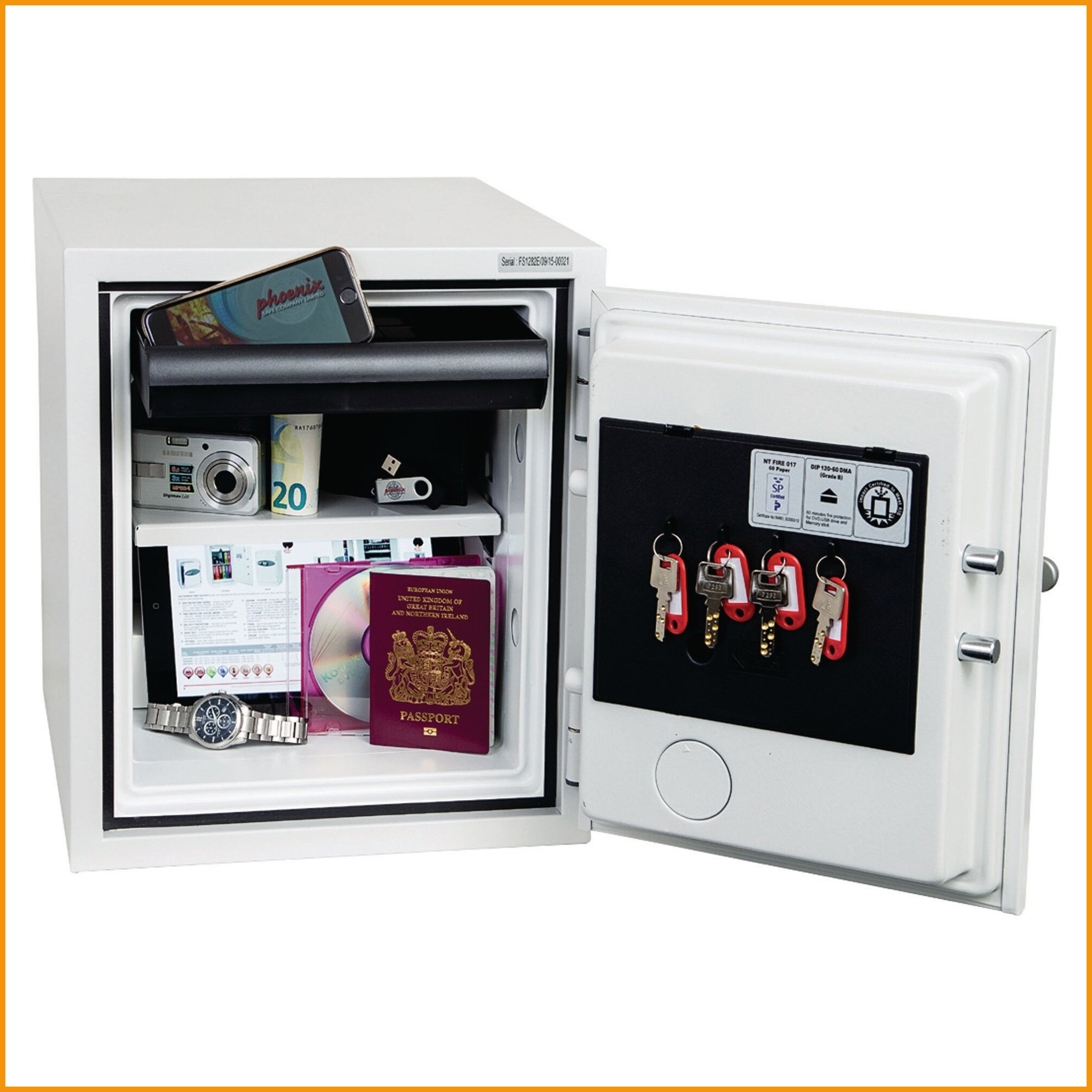 Phoenix fs1282e 1h -paloturvakaappi suojaa tärkeät asiakirjat ja datamateriaalit palolta. kätevän kokonsa ansiosta kaappi sopii hyvin esim. toimistoihin, kotitalouksiin, kouluihin, myymälöihin ja sairaaloihin. kaapit on testattu ruotsissa nt 017 -normin mukaisesti antamaan 60 minuutin ajan palosuojaa paperisille asiakirjoille tai vastaavasti 60 minuutin paloturvan mediamateriaalille (esim. dvd, usb). paloturvakaapin ovessa on elektroninen koodilukko led-näytöllä. lukossa on sisäänrakennettu hälytys, joka hälyttää murtotilanteessa tai jos koodi on laitettu 4 kertaa väärin. kaappi voidaan kiinnittää lattiaan (sisältää pultit betonilattiaa varten). kaapin sisällä on avainkoukut. pinta on viimeistelty naarmuuntumattomalla valkoisella maalilla. tilavuus 25 litraa, paino 36 kg. sisämitat : 26 x 30,4 x 32 cm. ulkomitat: 35,0 x 43,0 x 41,0 cm.Paloturvakaappi Phoenix Titan paloturvakaapin tyyppi ii 60 min luokitus turvallinen paloturvakaappi pikatoimituksella on korkealaatuinen turvallisuustuote, jonka toimitus hoidetaan heti kun sitä saapuu varastoon (1-2 viikkoa). Huomaa, että toimitus on ilmainen yli 140 € hintaisille verkkokauppa ostoksille! Meiltä voit tilata laskulla ja ilman rekisteröitymistä.