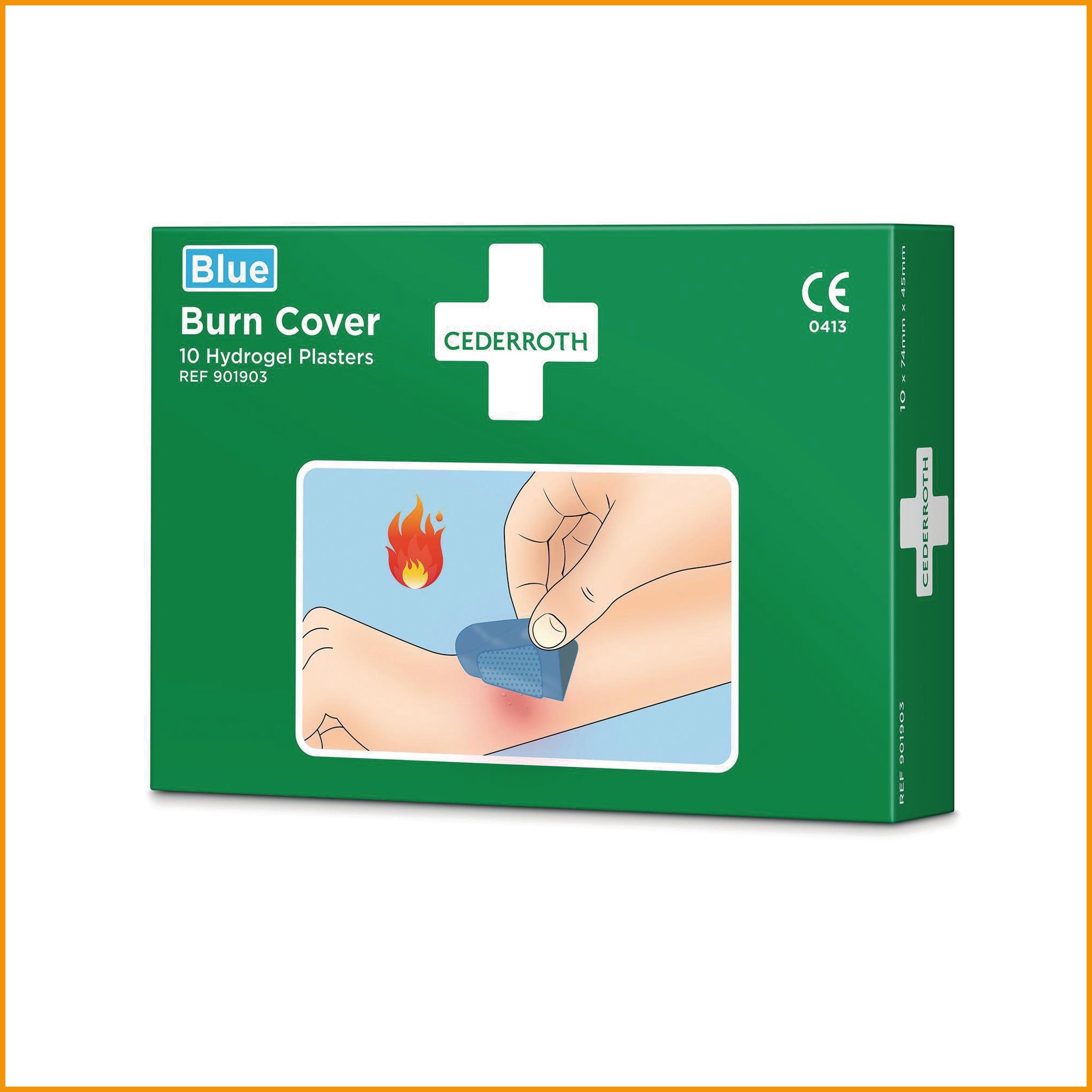 Palovammalaastari Burn Cover Cederroth 901903 on hydrogeelilaastari, joka suojaa pieniä palovammoja. Burn Cover palovammalaastari on väriltään sininen ja soveltuu siten elintarvikkeiden käsittelyyn. Haavatyyny koostuu hydrogeelistä, joka ei tartu haavaan. Laastarit ovat vedenkestäviä ja steriilejä. 10 laastaria (74 x 45 mm) pakkauksessa.