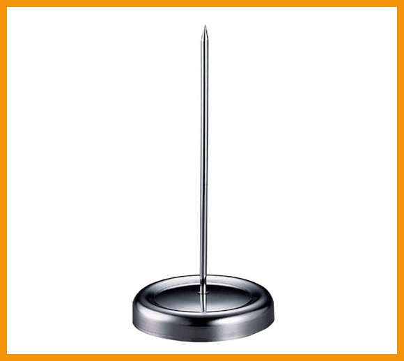 Plastipapin Paperipiikin sekä pyöreä jalusta että varsi ovat vankkaa metallia. Piikin päässä on muovinen suoja vahinkoja ehkäisemään.Mitat: korkeus 155 mm, jalustan halkaisija 73 mm.