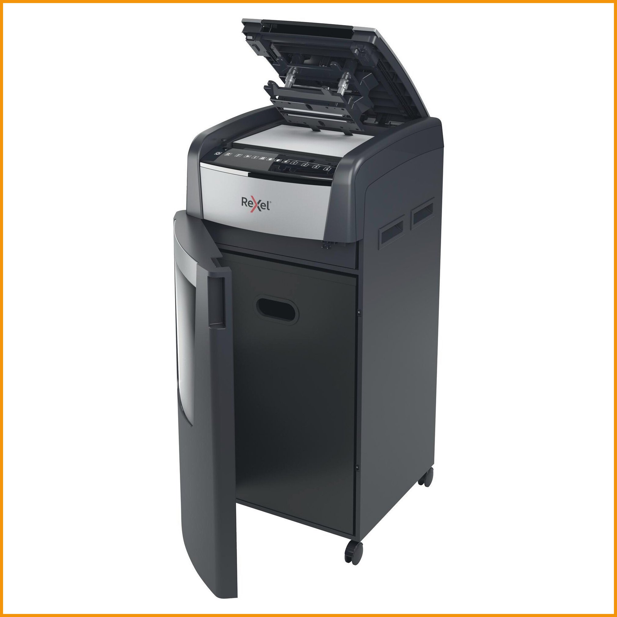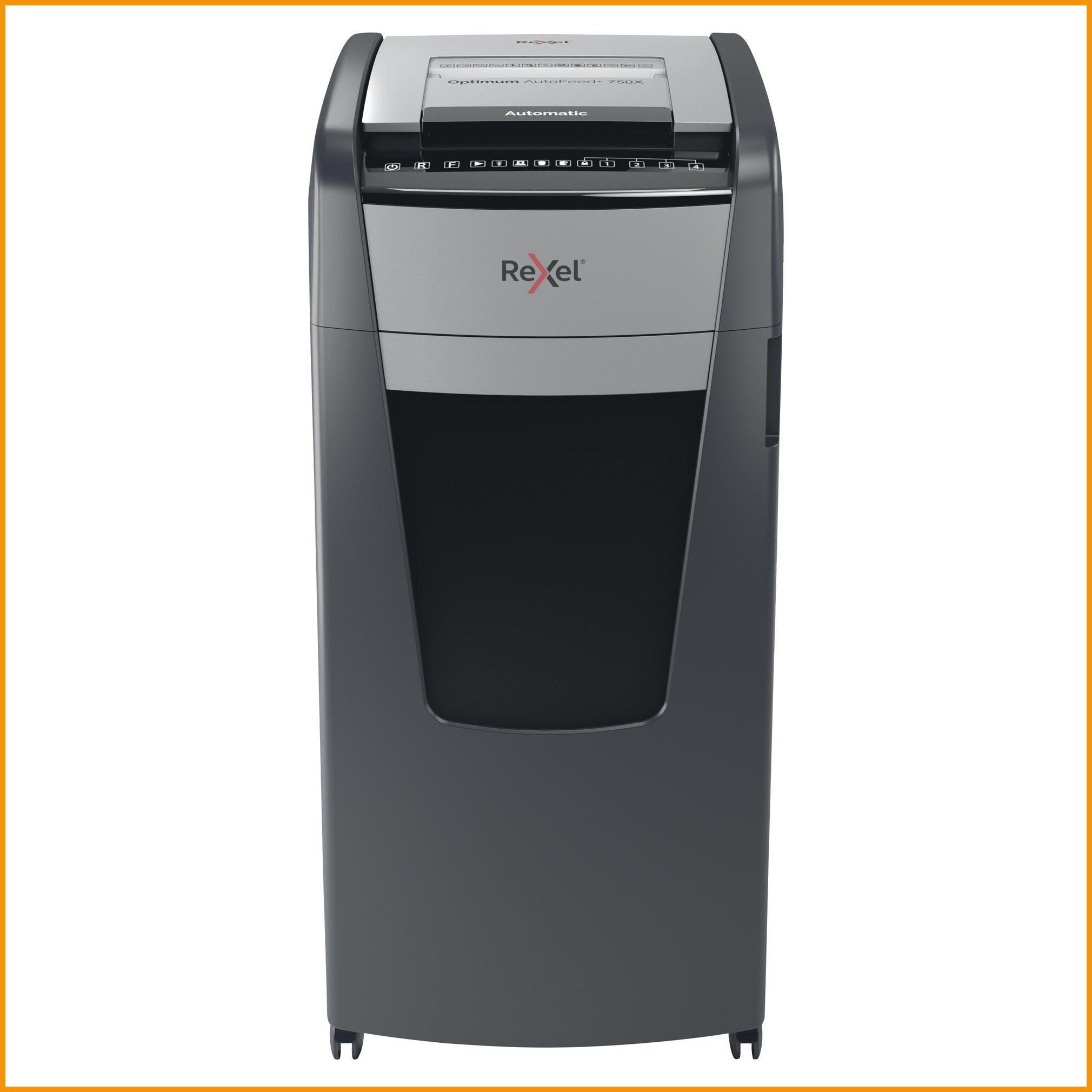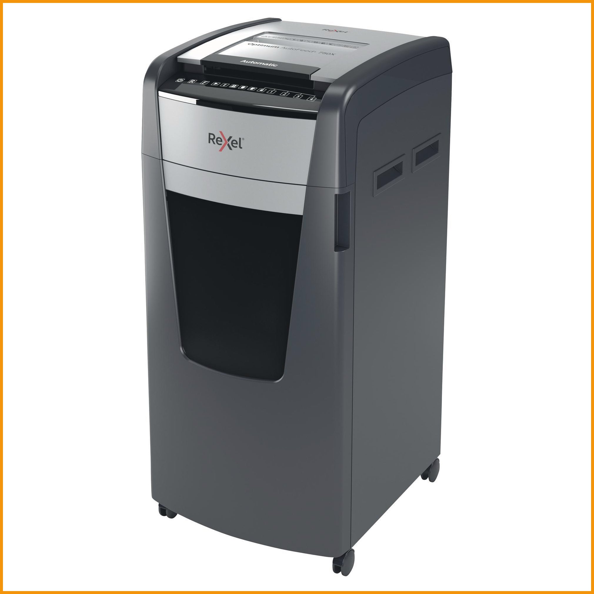 Rexel Optimum 750X automaattinen paperisilppuri on ristiinleikkaava ja erinomainen tietoturvaratkaisu isoihin toimistoihin. Erittäin hiljainen silppuri tuhoaa myös CD:t, luottokortit, niitit ja liittimet. Paperisilppurin automaattitoiminto tuhoaa 24 minuutissa jopa 750 arkkia (80 g) eikä sen tarvitse jäähdytellä ennen seuraavaa erää. Manuaalisesti voit syöttää 20 arkkia kerralla. Automaattitoimintoa on erittäin helppo käyttää: lisäät paperipinon luukun sisälle, suljet kannen ja silppuri tuhoaa paperisi puolestasi. Jam Free -jumiutumisenesto ja itseöljyävä ominaisuus pitävät huolen Paperisilppurin vaivattomasta toiminnasta. Sinun ei myöskään tarvitse seistä silppurin vieressä vahtimassa sitä: PIN-koodilukko estää asiattoman pääsyn asiakirjoihin kesken tuhoamistyön. Virransäästötoiminto vähentää virrankulutusta silppurin mennessä lepotilaan kolmen minuutin käyttämättömyyden jälkeen. Laitteen 140 litran roskasäiliössä on säiliön täyttymisen ilmaisin. Muista käyttää kaikissa Rexel-asiakirjasilppureissa erillisiä öljyarkkeja jokaisen tyhjennyksen jälkeen, pidentämään laitteiden käyttöikää.Paperisilppuri Rexel optimum 750x automaattinen on korkeatasoinen toimistotuote, jonka toimitus hoidetaan heti kun sitä saapuu varastoon (1-2 viikkoa). Muistathan, että hinnaltaan yli 140 € verkkokauppatilaus toimitetaan aina ilmaiseksi! Meiltä voit tilata laskulla ja ilman rekisteröitymistä.