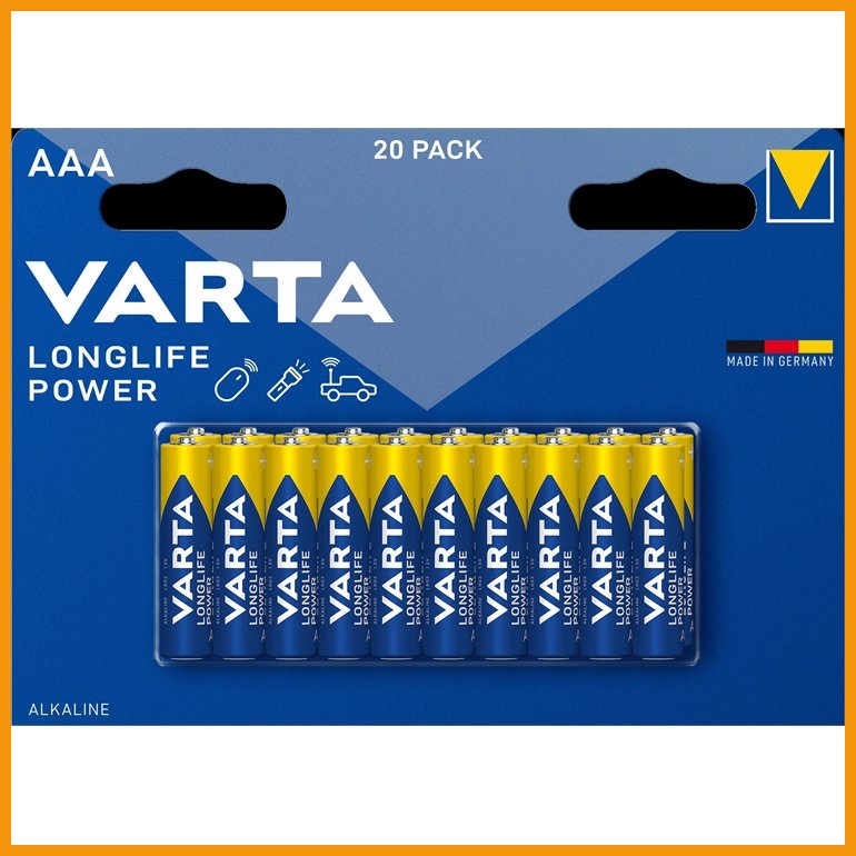 VARTA Longlife Power on erittäin tehokas alkaliparisto, joka on kehitelty paljon energiaa vaativille laitteille kuten lelut, kauko-ohjaimet, langattomat hiiret, taskulamput jne. Joutsenmerkitty, Saksassa valmistettu laatutuote.Jännite 1.5 V.