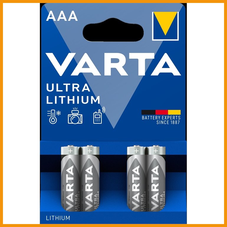 Varta Ultra Lithium on korkealuokkainen litiumparisto, joka on 38 % alkaliparistoa kevyempänä ja hyvin myös äärimmäisissä olosuhteissa toimivana täydellinen valinta energiaintensiivisille laitteille urheilukäyttöön ja ulkoiluun. Erittäin kestävien litiumparistojen teho on taattu 15 vuodeksi oikein varastoituna.Koko: AAA